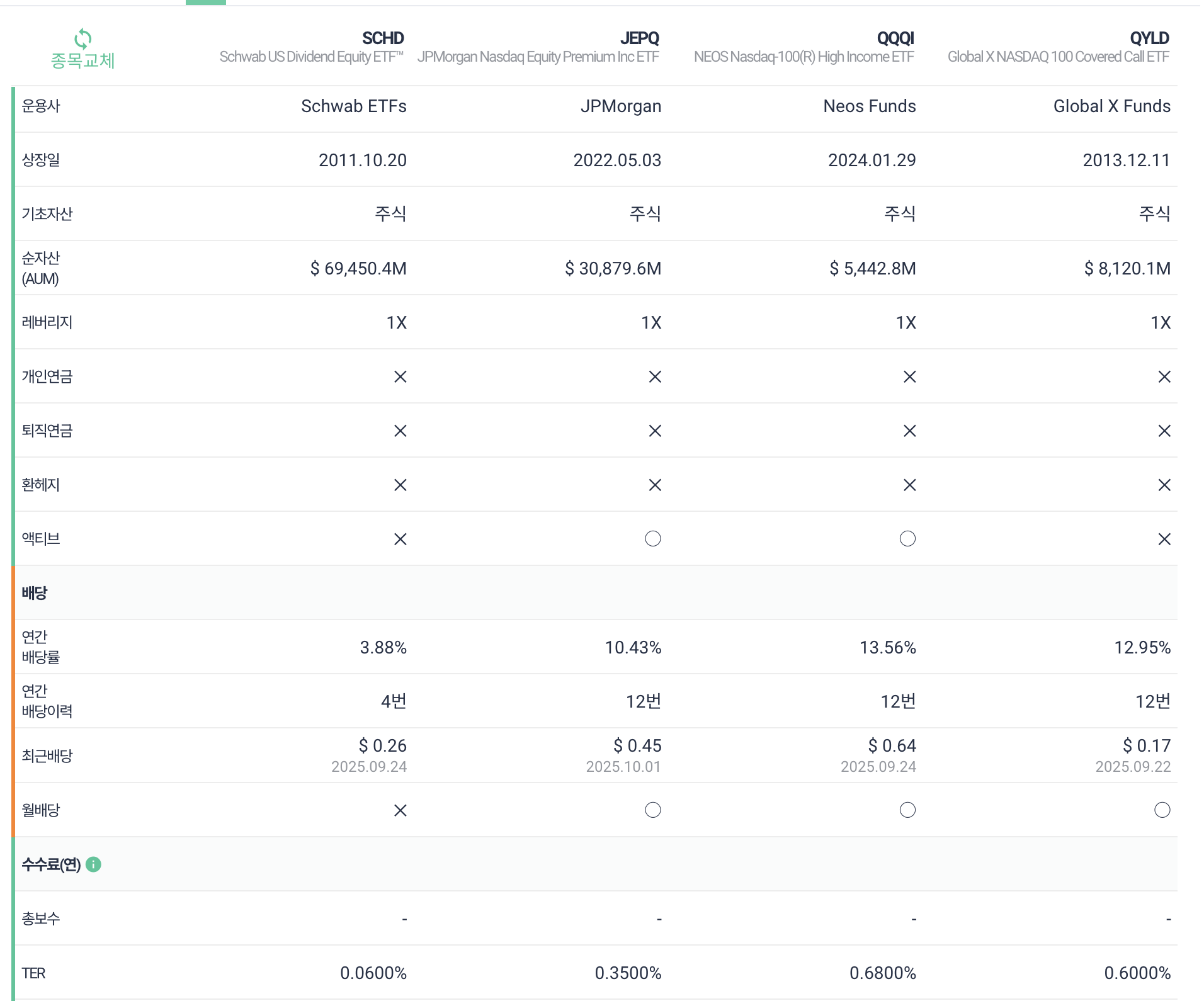- 💪 특징: 나스닥100 커버드콜, 2025년 10월 배당 $0.61