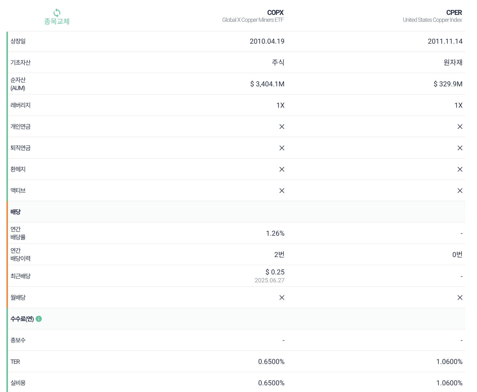 CPER 추천 대상: 👉 구리 가격만 추종하고 싶은 분 👉 단기 트레이딩하시는 분 👉 기업 리스크를 피하고 싶은 분